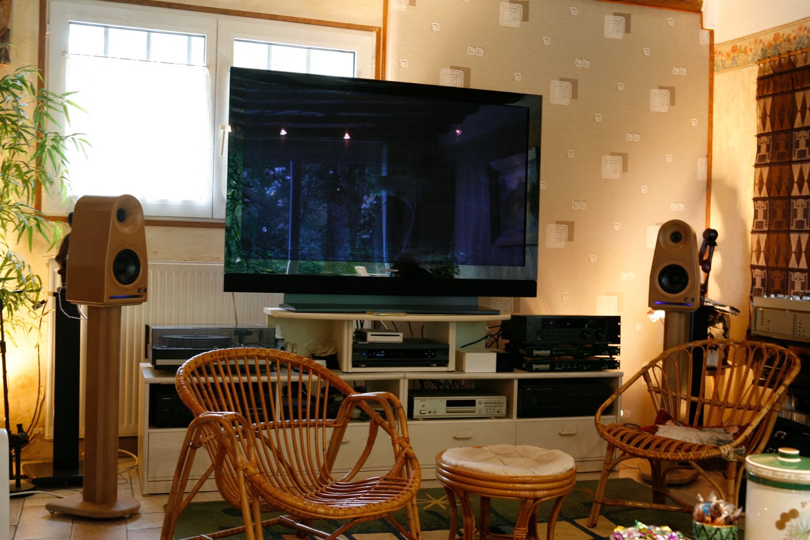 La contrebasse est magnifique, les lignes de basse sur jonaz ou Marcus Miller sont bluffantes face à une si petite enceinte. Le grain des voix n’est pa sen reste, rien de décharné là dedans… Sur un de mes vieux CD de démo que me ressort Patrick, je redécouvre certains morceaux avec une tessiture extraordinaire : Rebecca Pidgeon, Eva Cassidy, Gainsbourg… La reverbe sur un Helen Merril est impressionnante de réalisme.