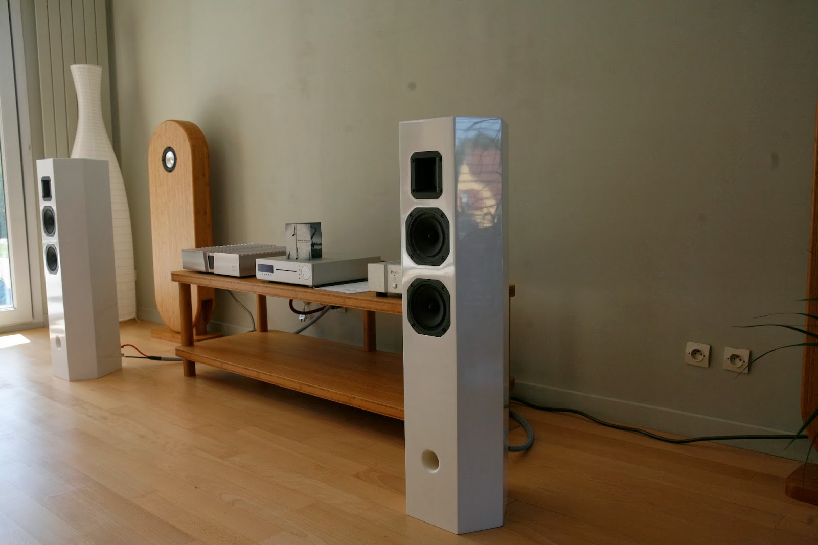 Immédiatement les enceintes en banbou avec leur HP Jordan bas rendement étaient très bien tenues, mieux qu’avec les électroniques à tubes prêtées au même moment ou mon vieux Leben 300cs, mais sans égaler pour autant le Yamaha PC9500n. L’INSPIRATION C8 reste plus que suffisant). Plus tard, je pourrais constater qu’il drive parfaitement mes AudioPhysic Caldera, preuve de certaines capacités.