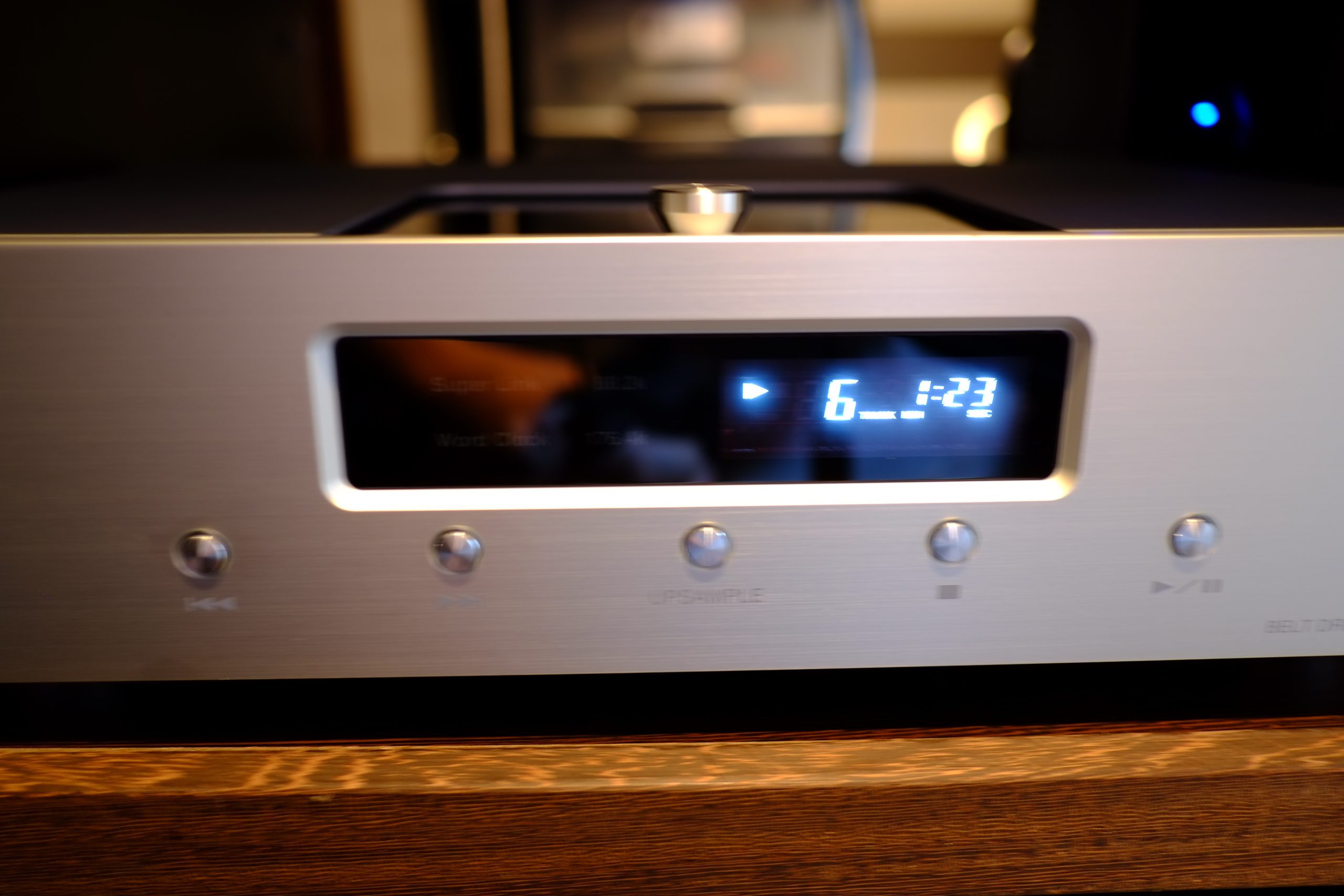 L’écran d’information sur la lecture reste assez classe et dans l’esprit de la marque, mais je reste nostalgique de le gros affichage de mon ancien EMM LABS. Quand on est situé à 5-6m du lecteur, c’est appréciable