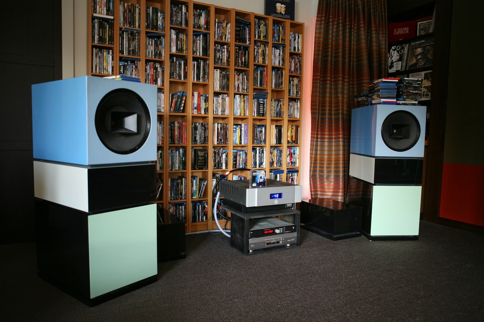 Je me suis souvenu d’une discussion avec le distributeur en France, m’invitant à utiliser en drive un simple lecteur blu-ray. Je l’ai donc fait avec un vieux lecteur DVD Pioneer 747. Le M1 connecté à un petit intégré ARTEC SE-50i et une paire d’enceintes HR utilisant le fameux HP ALTEC 604 / pavillon 1″ Mantaray.