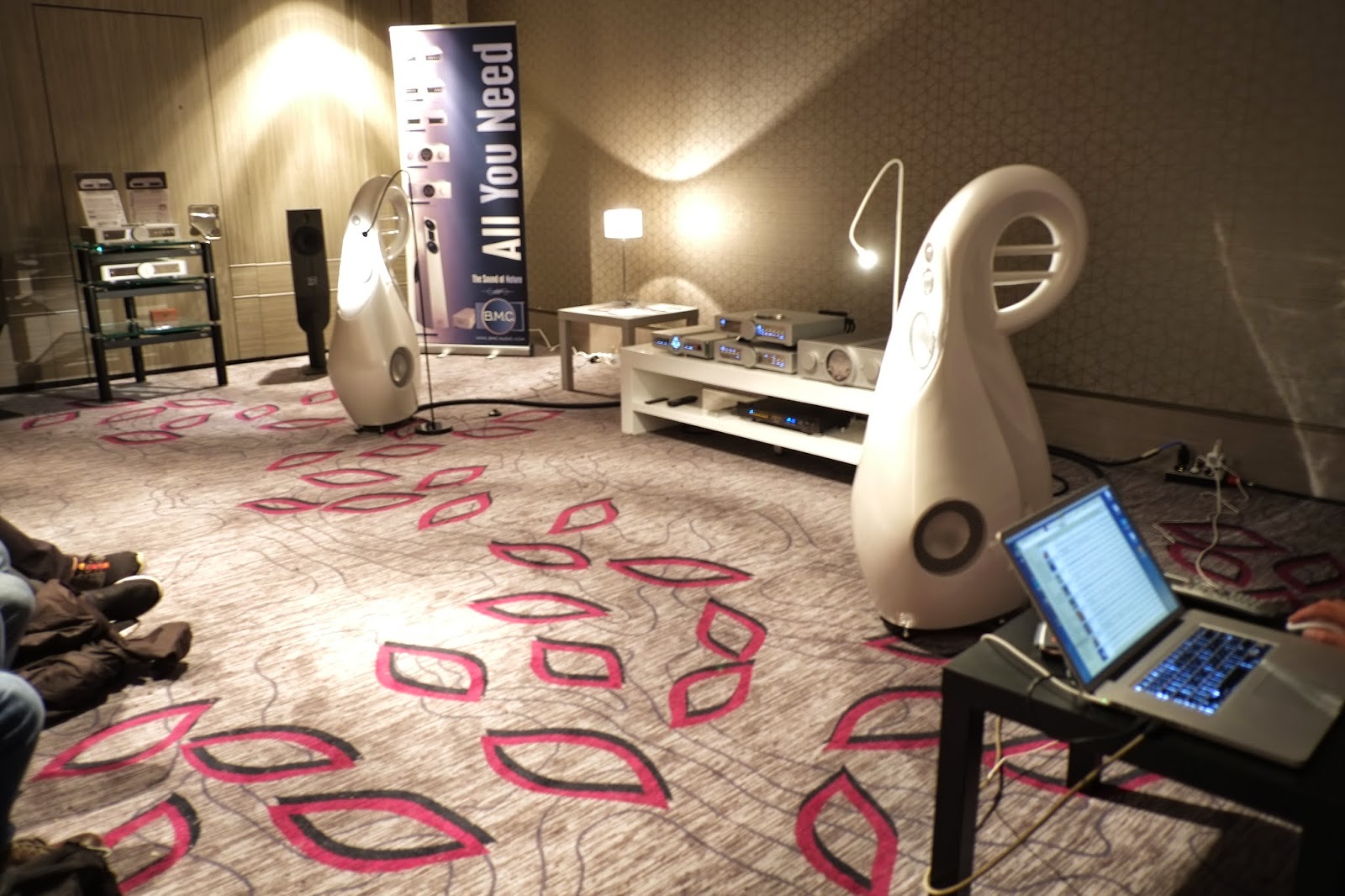 La référence One était également de la partie. Elles marchaient très bien, mais j’ai trouvé plus de magie sur les petites. Ce n’est que mon avis, bien sûr et visiblement pas partagés par tous les auditeurs présents. Autre bonne surprise également avec les colonnes Evolution que je n’avais jamais entendues aussi bien que sur le salon. Elles étaient associées à la gamme « Black » de Bel Canto et un Trinnov ST2 hifi que l’on peut considérer comme pas innocent dans le ressenti d’écoute.