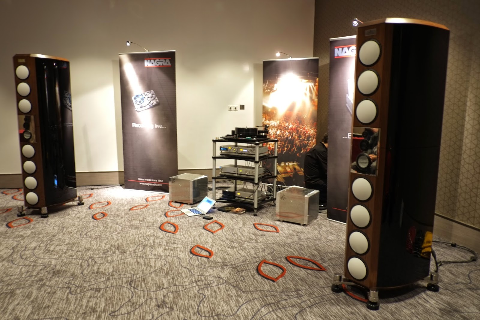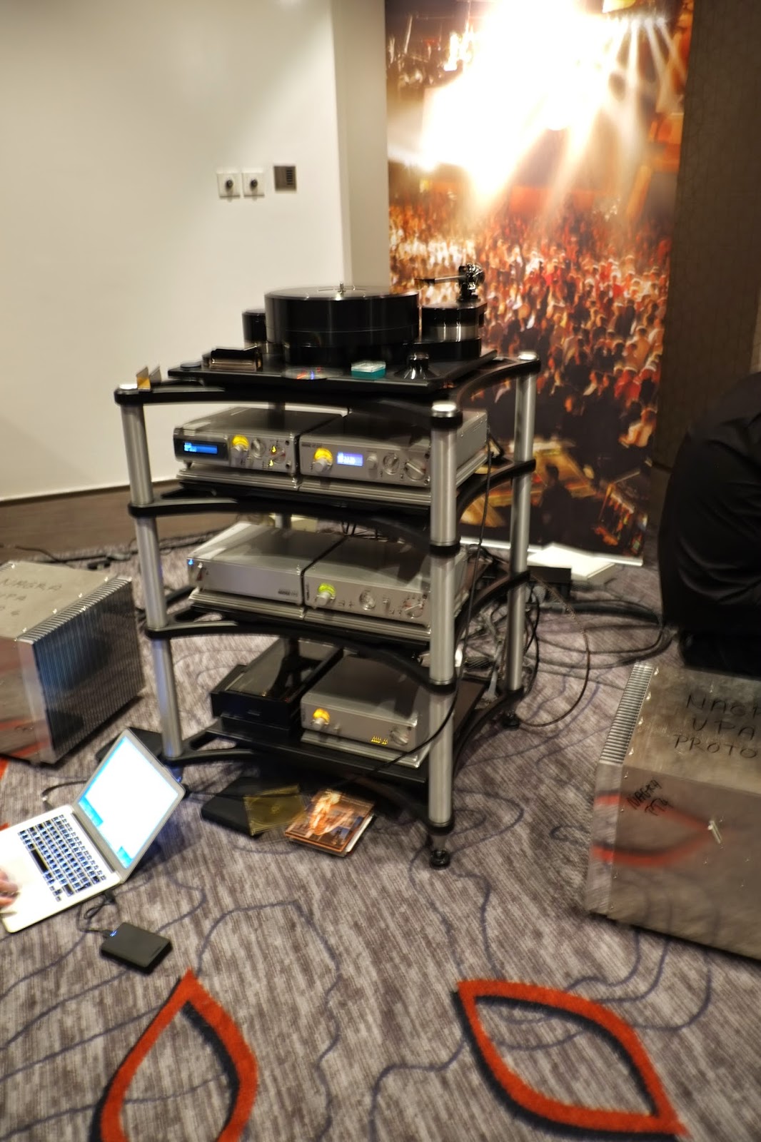 Vu le montant de l’addition des Coltrane Supreme 2 et des électroniques, dans ce qui est la plus grande salle d’écoute du salon, on ne peut qu’avoir une impression très mitigée. Certains vont penser que j’ai la dent dure, tant les électroniques Nagra sont réputées et hors de soupçon. En plus, étaient présentés des prototypes monstrueux pour Nagra de blocs mono dont on aura sans doute l’occasion de reparler dans le futur. Alors les timbres y sont et l’articulation aussi, mais il n’y avait aucune vie, le son ne sortait pas des enceintes. C’était mou en fait. Je suis revenu 4 fois dans cette salle avec l’espoir de découvrir autre chose, mais à chaque fois malgré des morceaux différents, je ressentais la même chose et la même frustration.