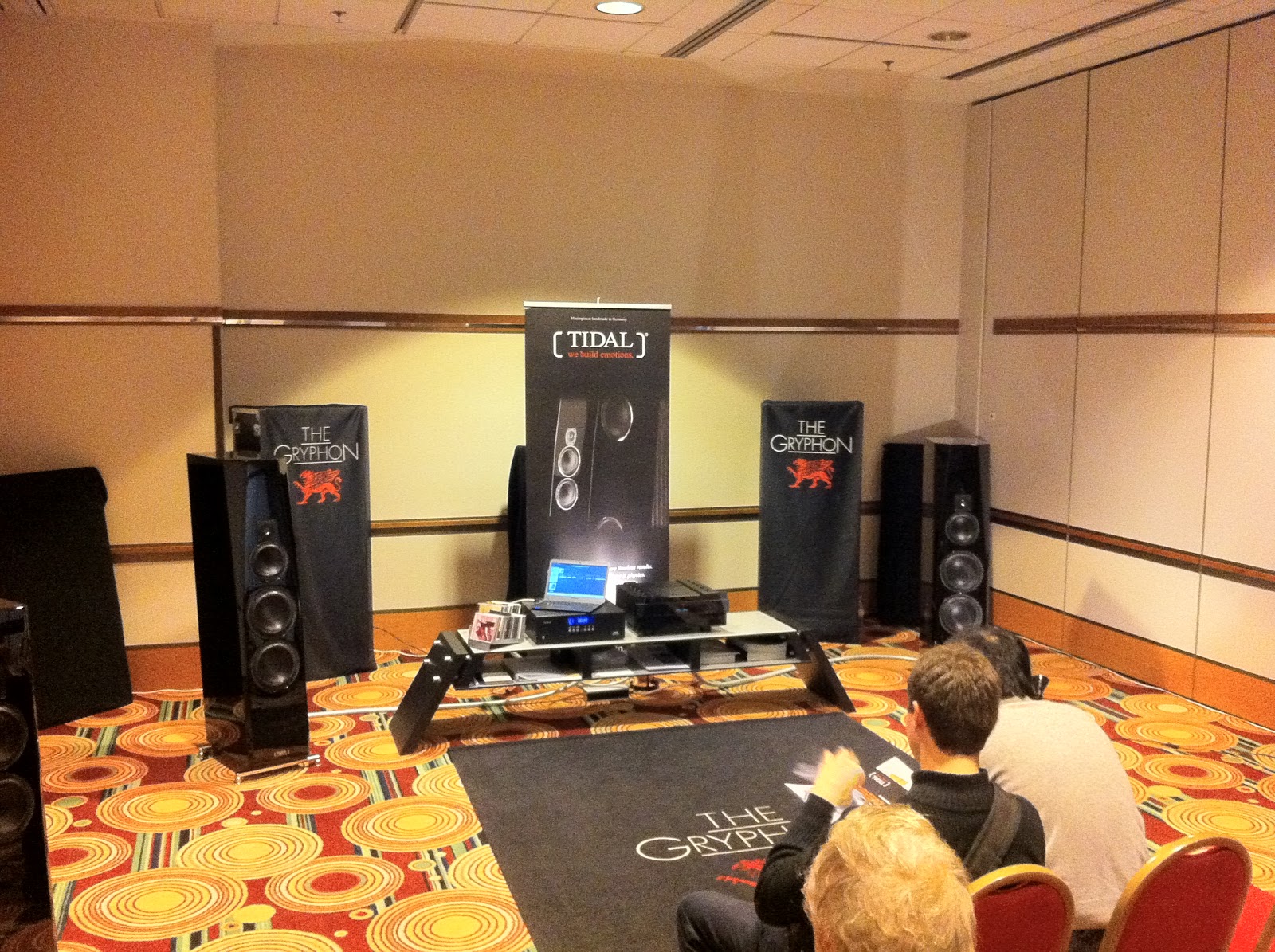 tout simplement la meilleure écoute de gryphon qu ej’ai pu faire, les TIDAL ont vraiement une belle finition et l’association réalisé avec de l’EMM en source était vraiment bien équilibré et très musicale à mon goût. J’ai malheureusement manqué mon ami David Rio pour parler du système présenté. - salle Nola Speakers