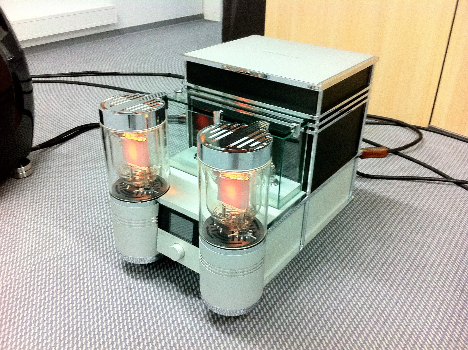 Au rayon des électroniques, mon cœur s’est emballé pour les californiens de Audio Power Labs avec leurs énormes bloc mono à base de tubes 833Cproposant 200W en classe A en push-pull. 74 kg chaque pour 103 K€ de mémoire. Ils ont aussi un Bloc stéréo Single End. L’écoute des Vivid m’a semblé plus vivante que d’habitude avec un niveau de détail et de micro-informations très élevé.