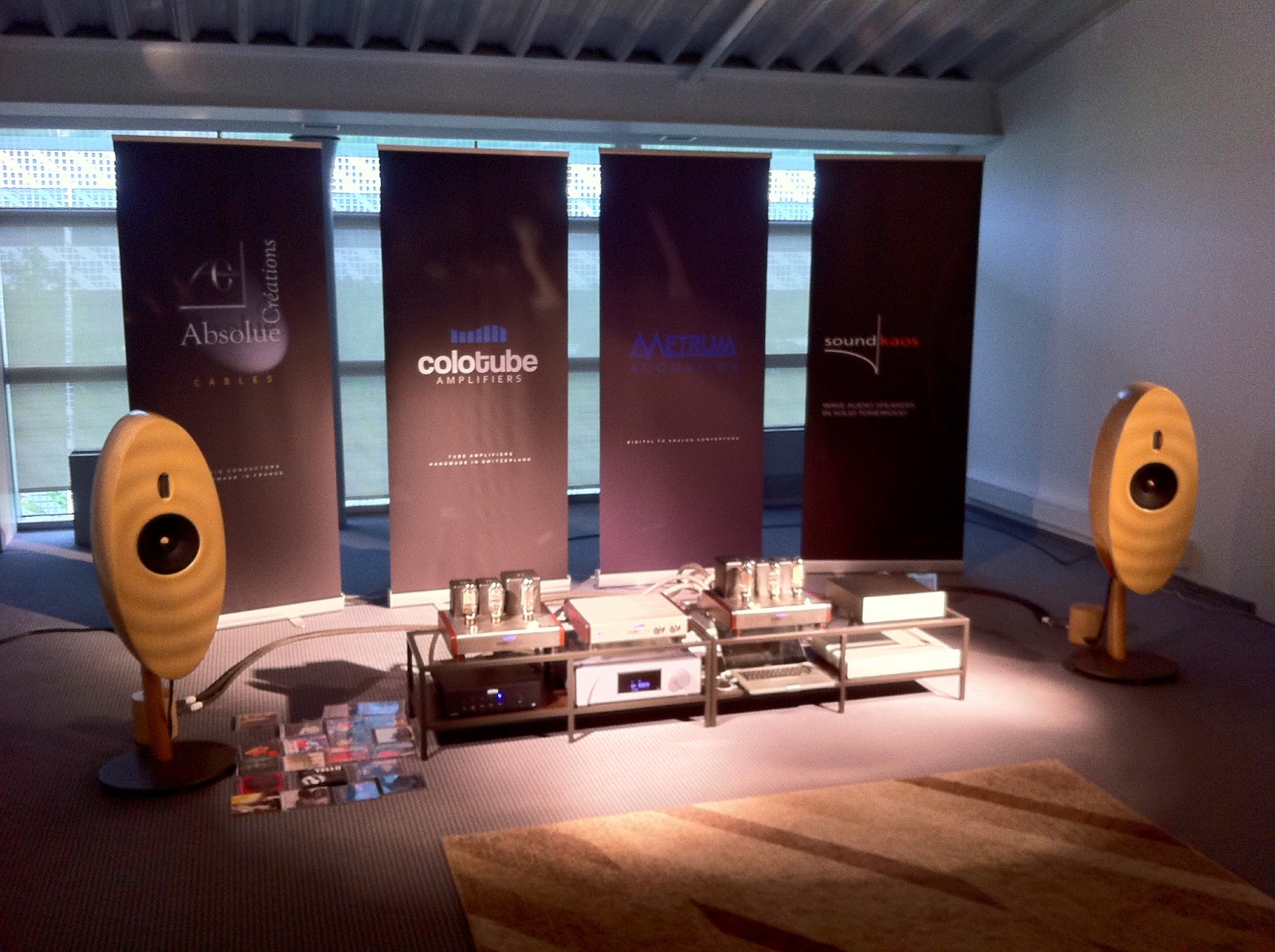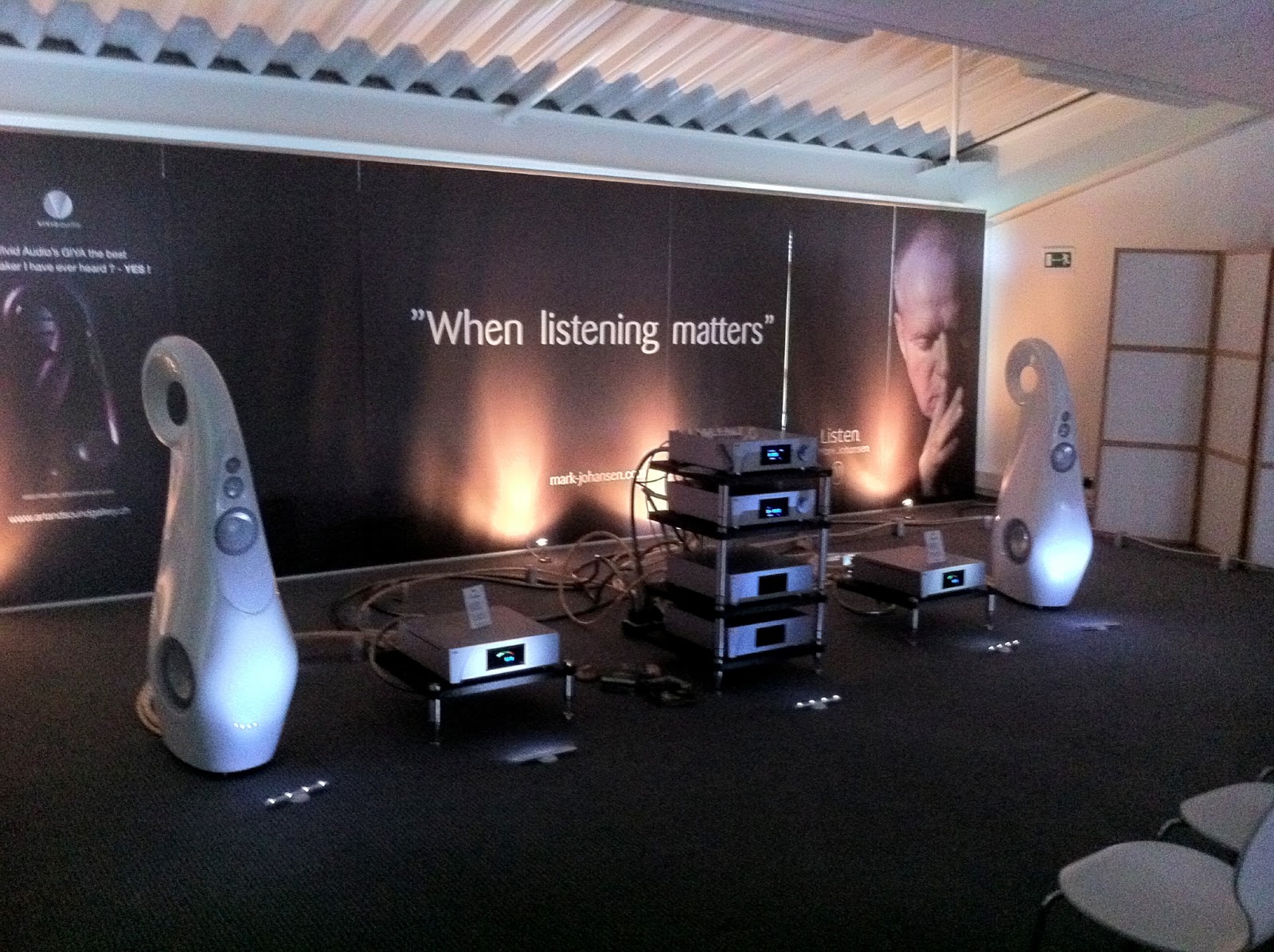 L’écoute de l’étendard de la marque anglaise Living Voice, m’aura laissé sans voix, pris par la magie du haut rendement et par chacun des morceaux. Un grand moment d’émotion. J’ai déjà pu écouter les colonnes de la marque lorsque Neil Clowes (NC audio) les distribuait en France, mais ce modèle « vitrine » est tout à fait exceptionnel. Vraiment pas facile de passer après cette salle, qui a un goût de reviens-y … Avec un tel système on pourrait y passer la journée et vivre la fin de sa vie en ermite.