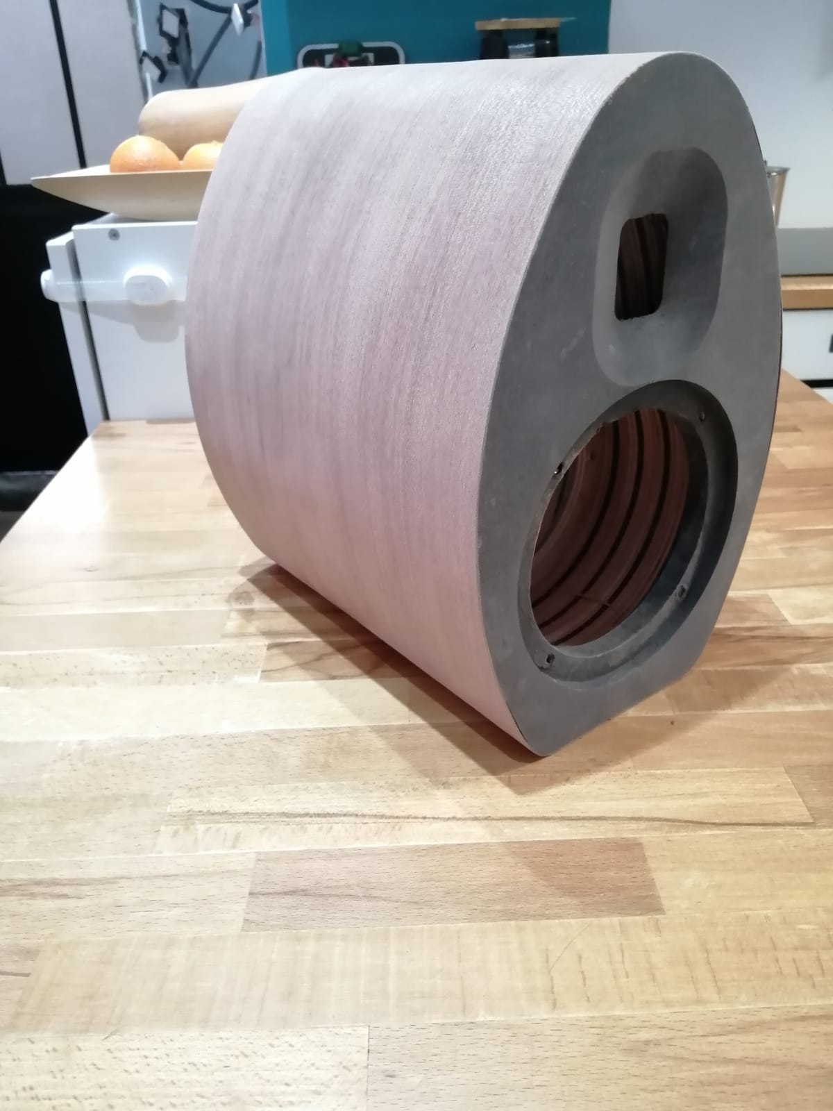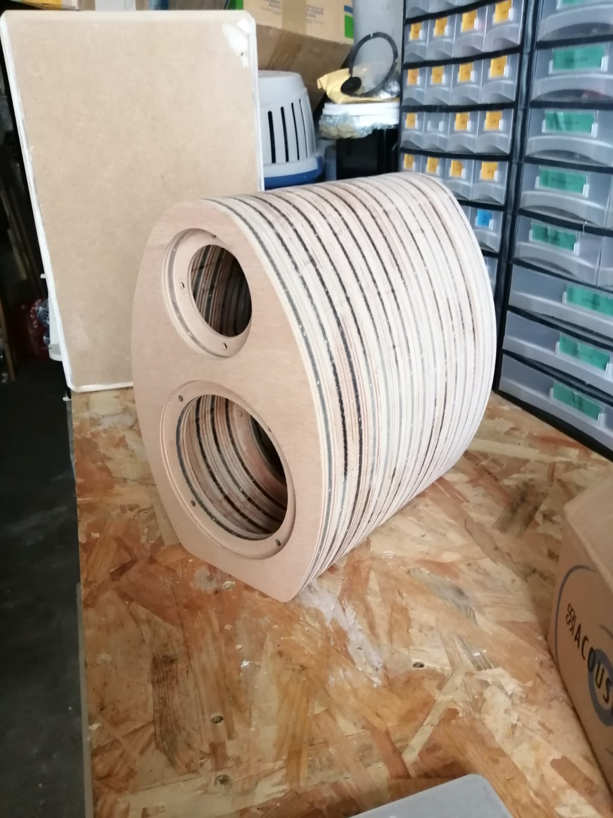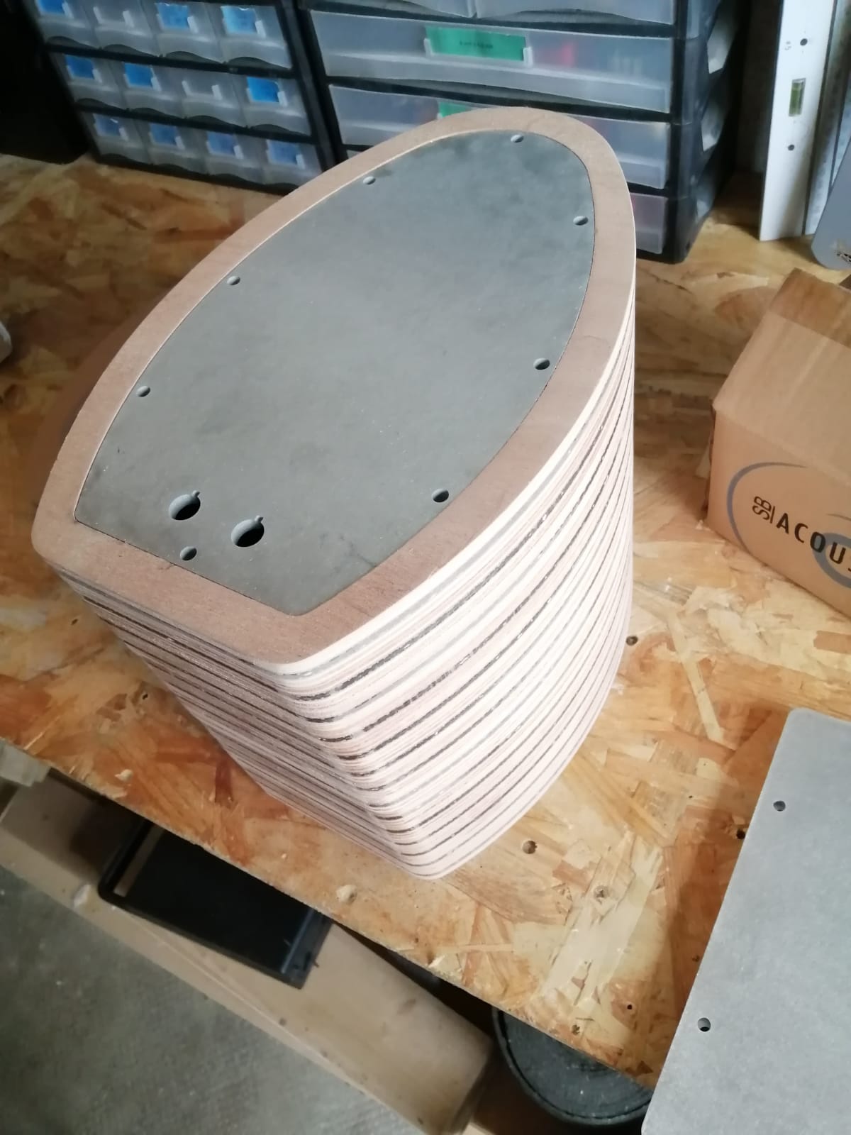 La fabrication est sans appel et constituée d’une superposition de strates de bois, découpées chez un menuisier français (en commande numérique). En bon musicien, vous ne serez pas surpris de savoir que Stephane est très exigeant sur ses caisses. Un élément clé dans le résultat final, aussi important que le choix des transducteurs et des composants des filtres.