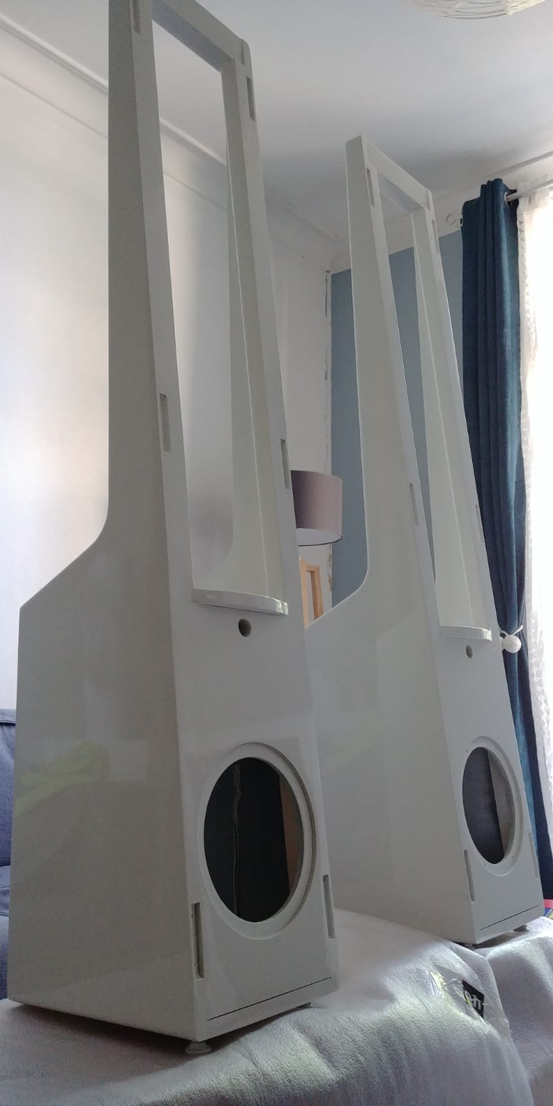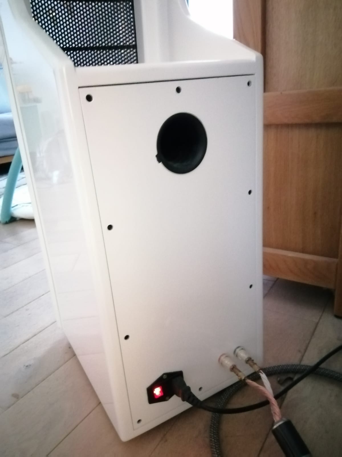 Enfin la caisse a été laquée dans une livrée blanche du plus bel effet, donnant au Martin Logan une modernité qu’on ne leur connaissait pas.