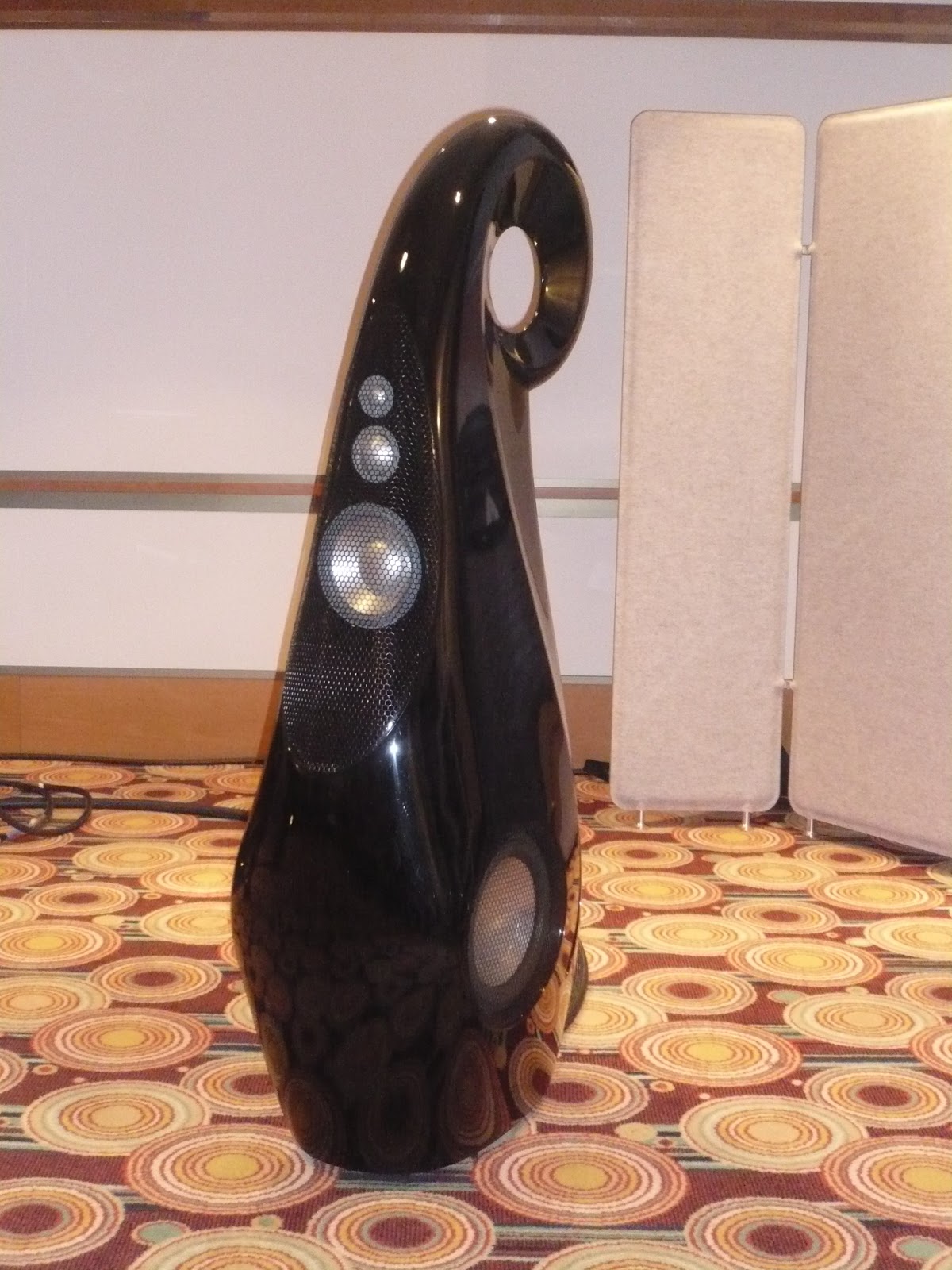 Enfin importée en France, cette marque fondée, par le concepteur des célèbres Nautilus B&W Laurence Dickie (vous ne pourrez passer à côté de l’air de famille), présentait la GIYA G2, sculpturales, vraiment magnifiques et un son qui m’a agréablement surpris avec un grave qui descendait bas, propre. Souvent méfiant avec les membranes aluminium, à la différence des Blade, j’ai trouvé de la matière, une très bonne qualité de timbres et une restitution ample.