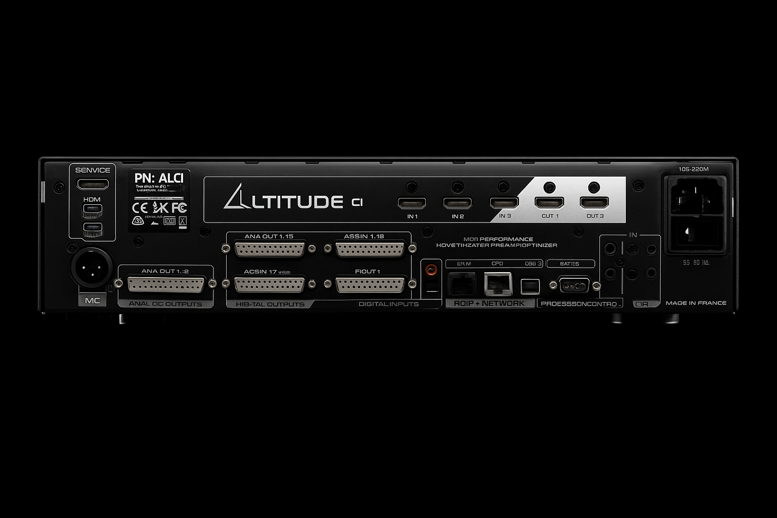 Le Trinnov Altitude CI conjugue puissance et flexibilité grâce à sa gestion simultanée de sorties analogiques, numériques et Audio-over-IP, jusqu’à 32 canaux aujourd’hui, extensibles à 64 sur les prochaines versions.Conçu pour s’intégrer parfaitement aux installations Home Cinema les plus ambitieuses, il offre une connectique pensée pour la performance et la simplicité.