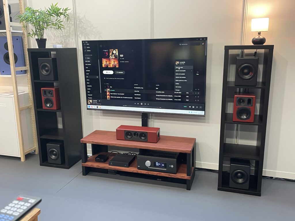 Une autre très belle écoute dans cette salle avec des enceintes PHONAR que je ne connaissais pas et les magnifiques blocs Audionec (un peu de nostalgie sur ce coup-là) relié à non pas un préampli hifi, mais à un préampli-processeur AV canadien de la marque ACURUS ACT 4 pour une des belles écoutes du salon. Ce n’est que mon avis, mais cet appareil est sans doute le plus musical du marché. Il ne dispose malheureusement pas des fonctionnalités d’un Trinnov ou d’un Dirac. Un processeur qui fait de la musique c’est assez rare pour le souligner.