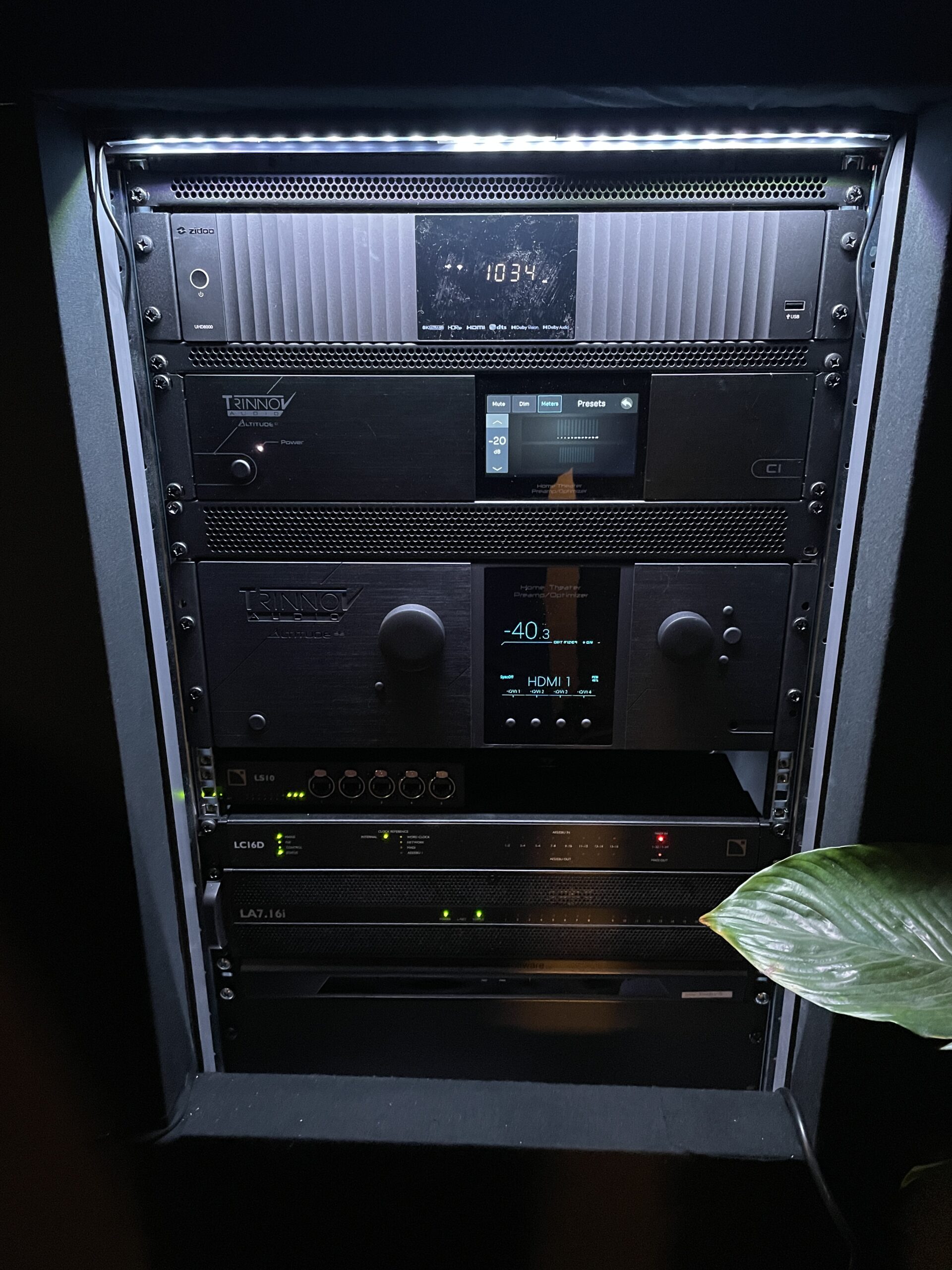 Le son Divatech dans des lilliputiennes pour une écoute de musique ou cinéma de haut niveau. Vivez les sensation d’un MACH 1 avec 3 petites enceintes LCR et pas moins de 4 sub pour 10K€ ( Prix intégrant l’ampli Divatech pour les sub). ici associé à un intégré Anthem.