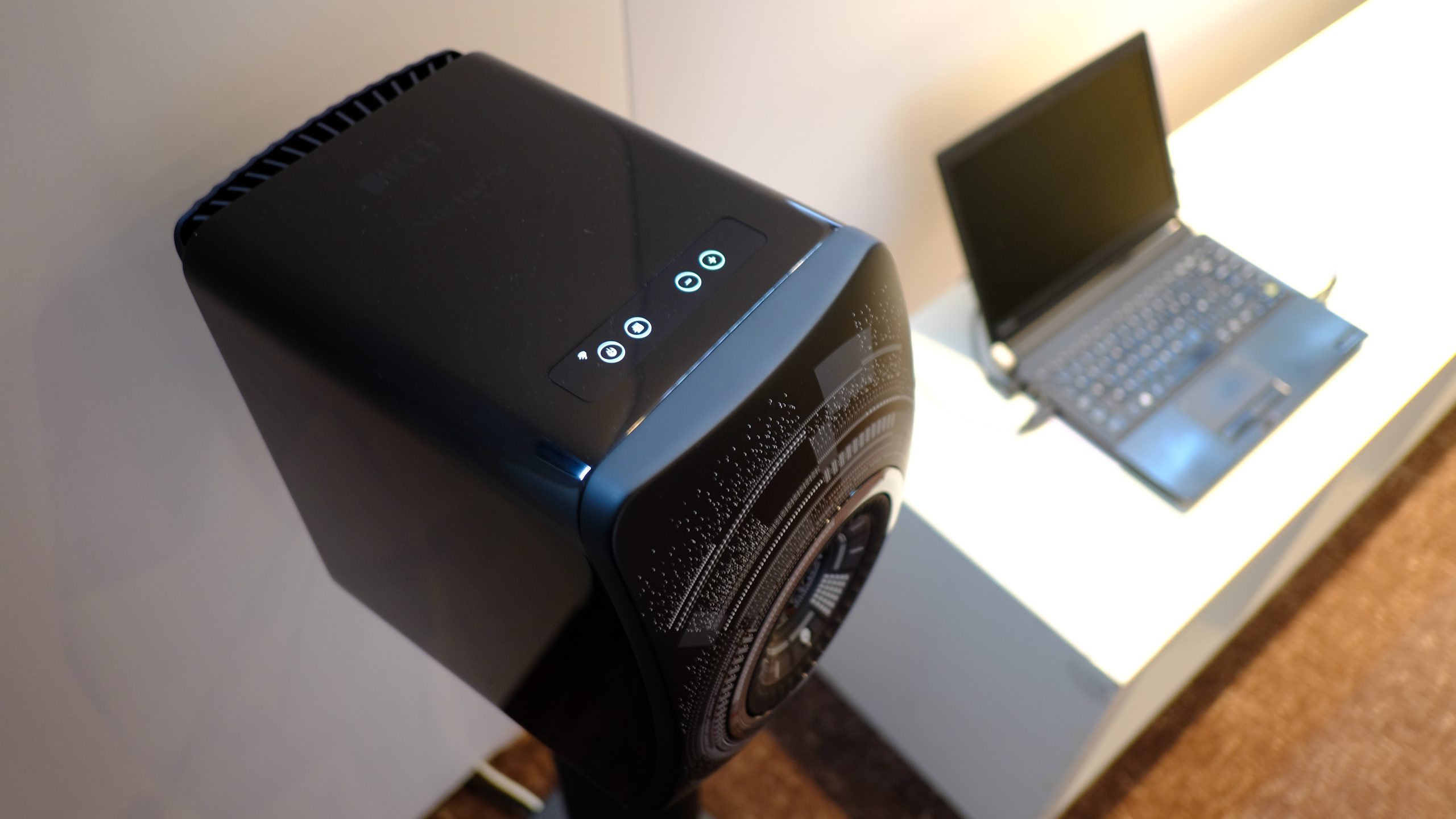 - KEF et sa LS 50 active absolument très bien et présenté dans une version artistique moderne pour en faire aussi un objet de déco.