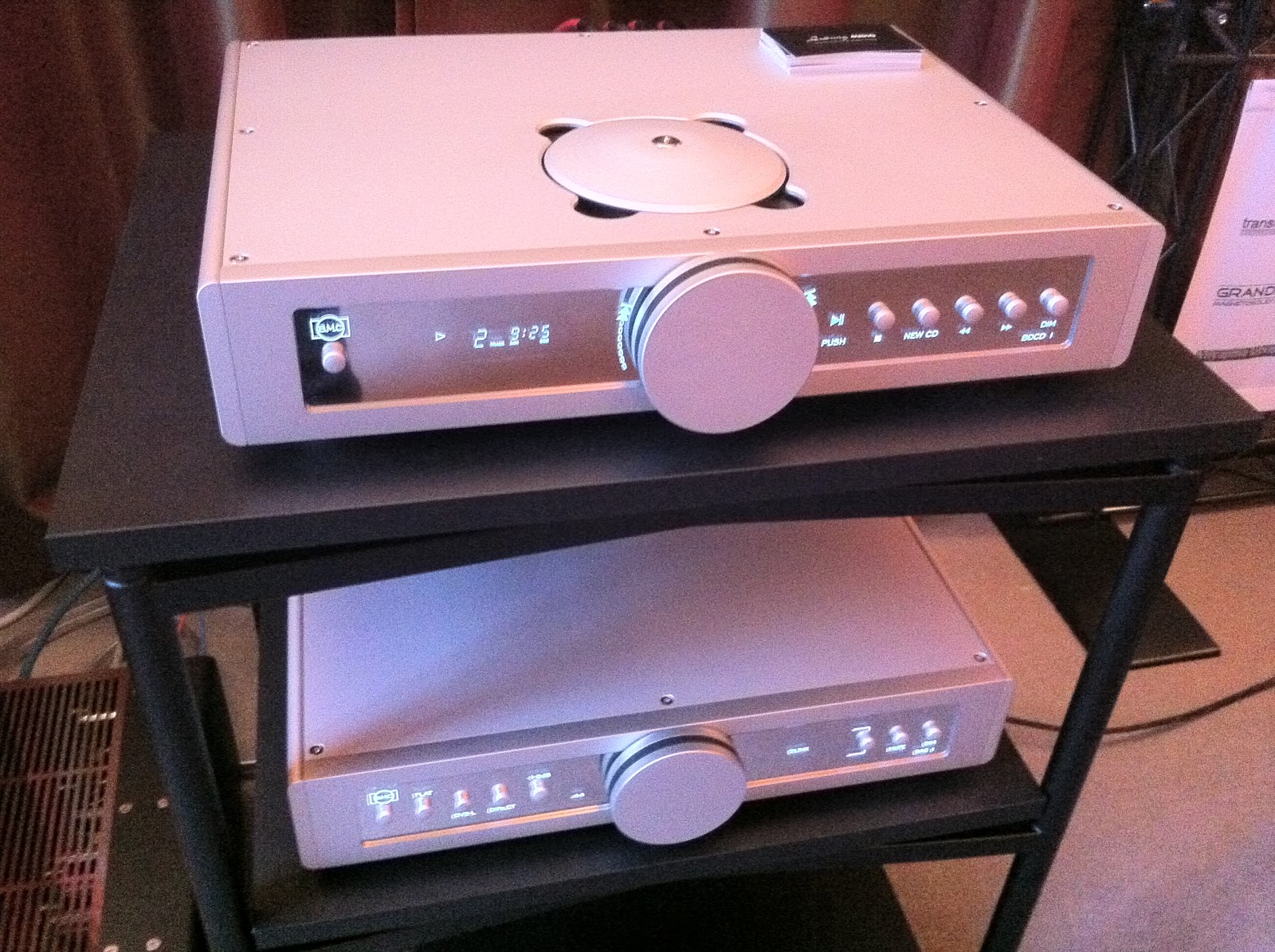 Le reste du système était composé d’une source allemande BMC (drive + DAC) déjà écoutée dans le passé qui est tant sur le plan esthétique que musicale une réussite réelle. De mémoire, moins de 4000€ chaque élément ce qui les situent plutôt dans la fourchette basse des éléments séparés.