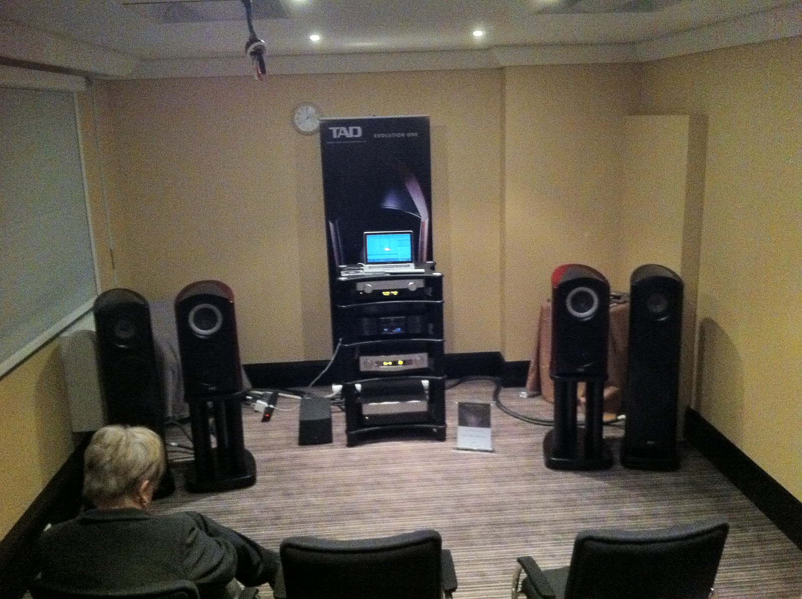 Vraiment dommage de mettre un tel système dans ces conditions d’écoute. Dans la grande pièce voisine où trônait les Dynaudio, il y avait largement la place de disposer le système pour en tirer le potentiel.